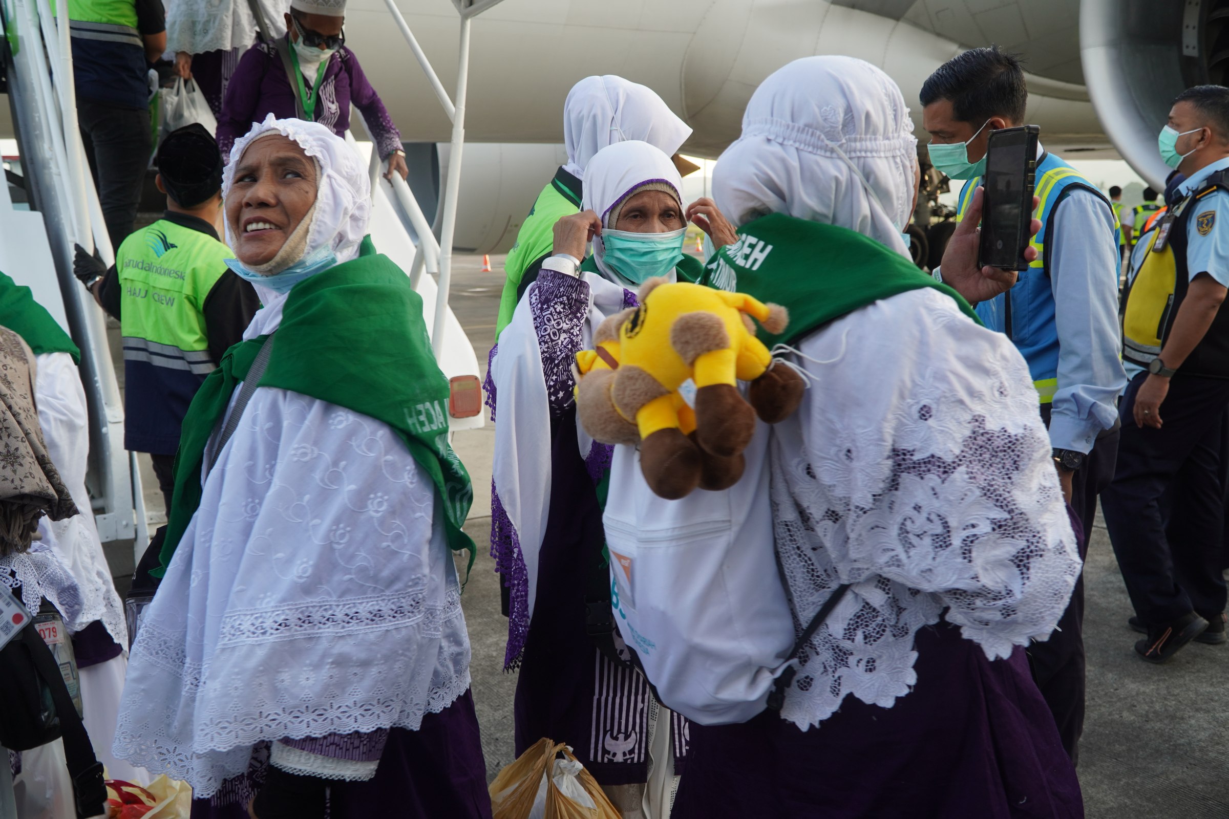 Ia juga mengimbau jemaah haji yang sudah tiba di tanah agar memakai masker untuk meminimalisisasi penularan virus kepada anggota keluarga di rumah dan lingkungan sekitar.