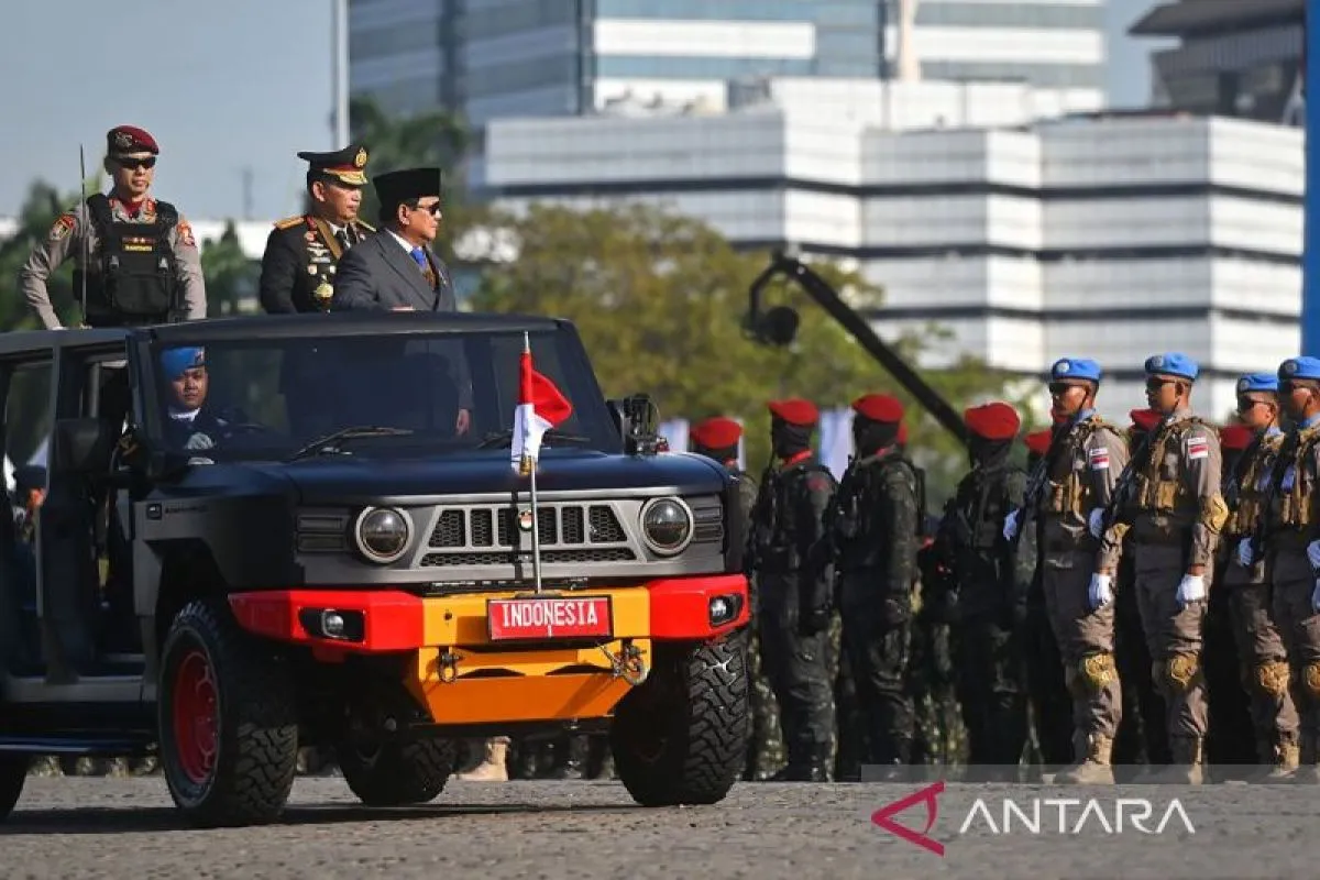 GoKABAR l JAKARTA – Presiden Prabowo Subianto selaku inspektur upacara memimpin upacara peringatan HUT Ke-79 Bhayangkara di Lapangan Silang Monumen Nasional (Monas), Jakarta, Selasa.