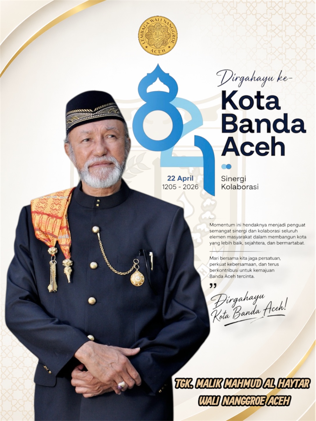 Aceh Besar,KabarKini.co– Gubernur Aceh, Muzakir Manaf, melakukan kunjungan silaturahmi ke kediaman Wali Nanggroe Aceh, Malik Mahmud Al-Haythar, di Meuligoe Wali Nanggroe, Aceh Besar, Sabtu (18/4/2026).